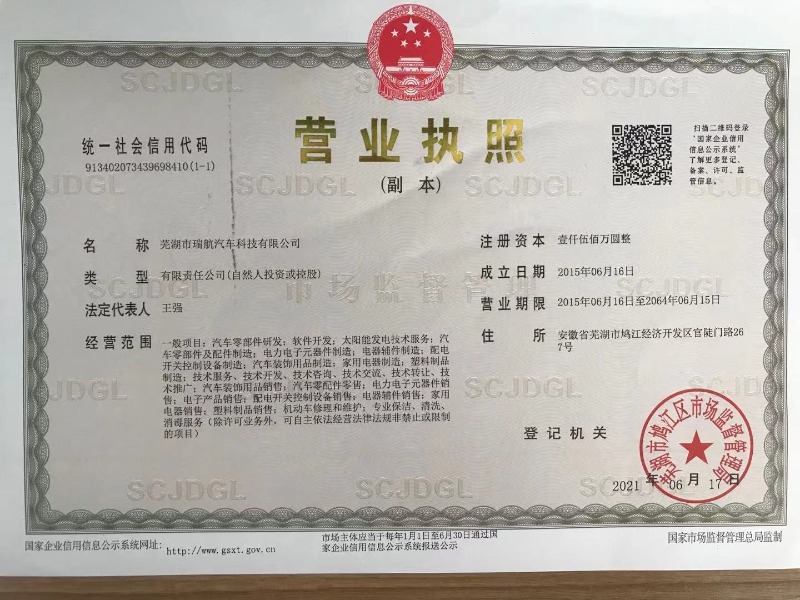 蕪湖市瑞航汽車(chē)科技有限公司于2004年申請(qǐng)了汽車(chē)窗簾專(zhuān)利(專(zhuān)利號(hào):ZL 2004 2 0062016.7 ZL 2004 2 0080718.8........)等幾十項(xiàng)專(zhuān)利,是一家專(zhuān)業(yè)從事汽車(chē)零部件的設(shè)計(jì)開(kāi)發(fā)及生產(chǎn)和銷(xiāo)售的現(xiàn)代化科技型企業(yè)。主要生產(chǎn)遮陽(yáng)簾、遮物簾、衣帽架、備胎蓋板、隔物板等系列產(chǎn)品。已通過(guò)IATF16949:2016體系認(rèn)證及中國(guó)國(guó)家強(qiáng)制性產(chǎn)品認(rèn)證證書(shū)(CCC)。 公司擁有自己的實(shí)驗(yàn)室進(jìn)行產(chǎn)品試驗(yàn)驗(yàn)證。有疲勞測(cè)試儀、氙燈耐候測(cè)試儀、載重測(cè)試儀、UL94水平垂直燃燒測(cè)試儀、汽車(chē)內(nèi)...